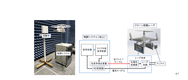 此外,无人机有效载荷(机载设备)的重量大幅减少,仅包含光电转换器、雷达电路和天线(用于发射和接收)。用于产生和处理光信号的控制设备放置在地面上,通过使用轻型光纤电缆和低频电信号电缆将其连接到无人机来实现功能。