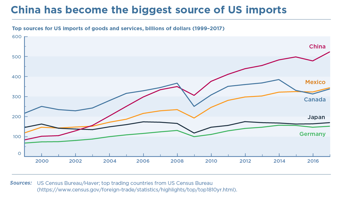 服务业顺差表明美国服务业在全球市场的竞争实力。根据美国国际贸易委员会的数据,2017 年美国的贸易逆差总额为 4,470 亿美元,原因是美国人的支出超过收入,并通过外国信贷弥补差额。