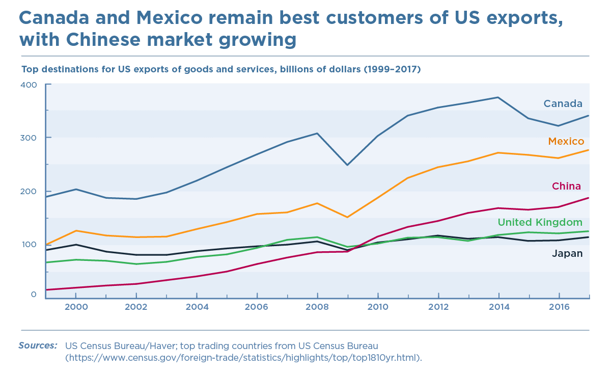 服务业顺差表明美国服务业在全球市场的竞争实力。根据美国国际贸易委员会的数据,2017 年美国的贸易逆差总额为 4,470 亿美元,原因是美国人的支出超过收入,并通过外国信贷弥补差额。如需了解更多信息,请观看视频“美国贸易逆差是一个问题吗?” ”