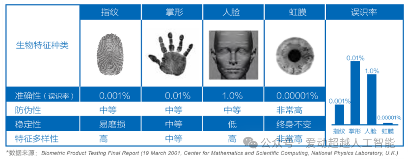 第一个维度,生物信息与非生物信息,即“指纹、虹膜、人脸特征”对比“磁卡”。