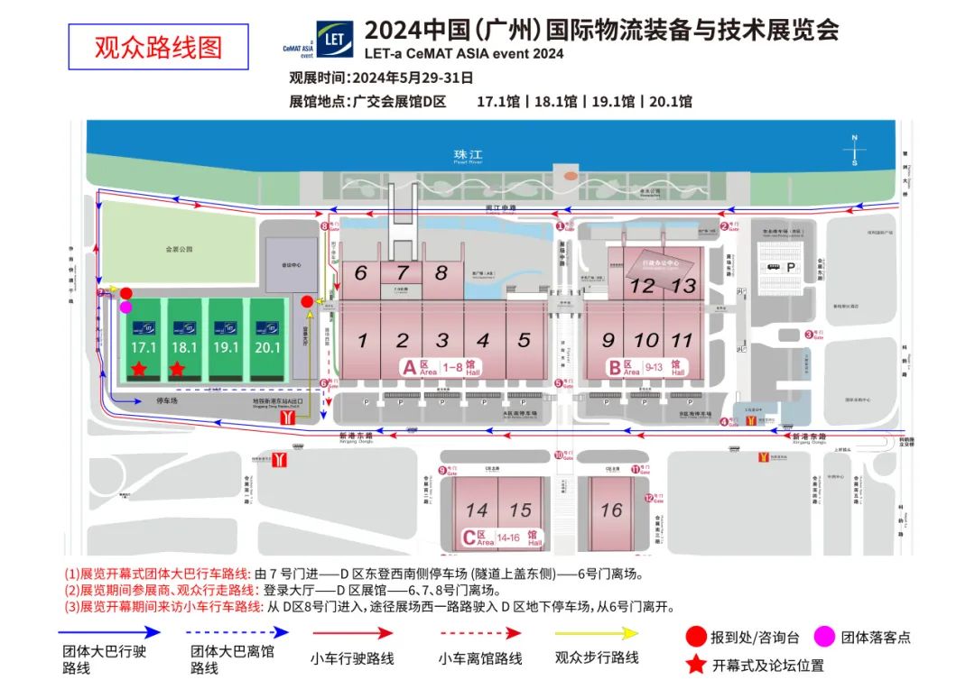 广州地铁8号线“新港东站A出口”,步行至广交会D区展馆6号门进入登录大厅。