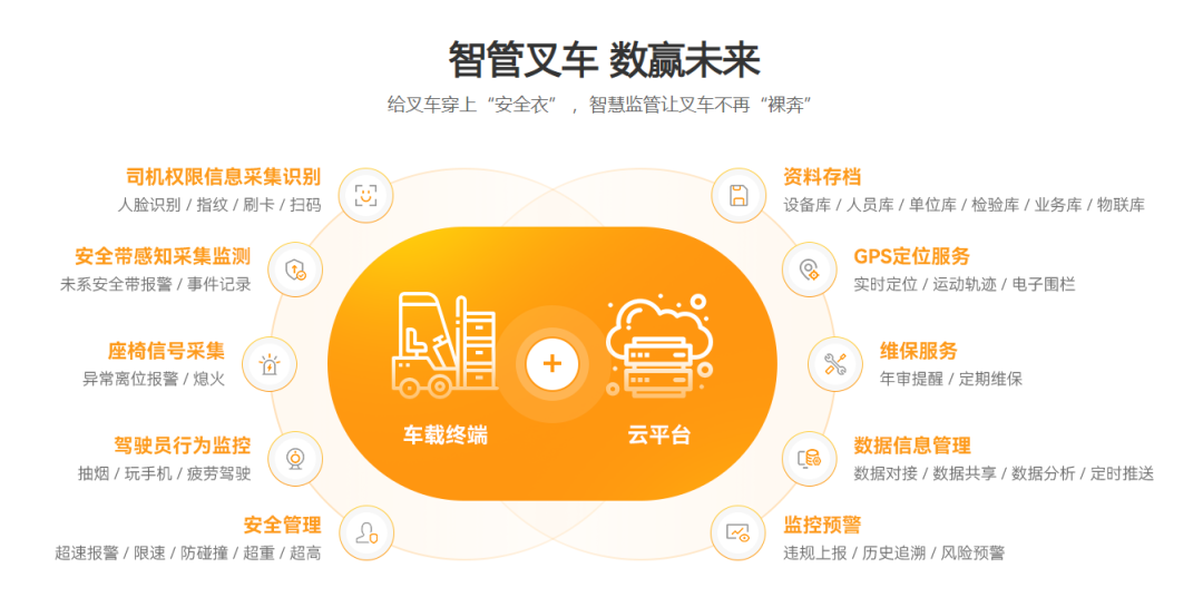 服务范围包含叉车、正面吊、装载机等机械设备的防碰撞、速度、载荷、车队管理等安全服务,以及场(厂)内物流的定位、监测、调度等仓储数智化服务,赋能企业“工业互联网+安全生产”的能力,助力企业快速实现工厂智能化及生产精益化,提升安全管理水平,提高企业效益。
