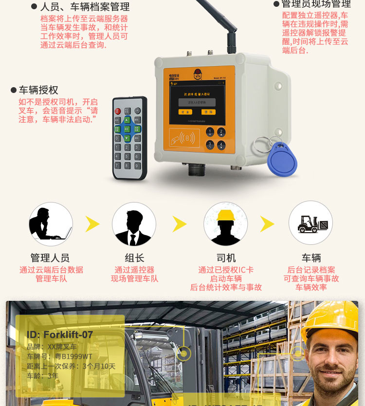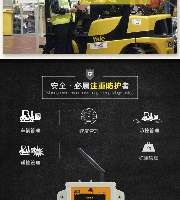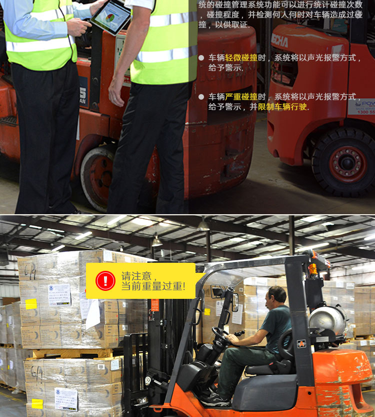 唯创 叉车称重超重报警器防碰撞预警区域超速限速智能安全防护管理系统