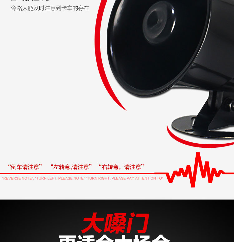 - 颜色分类: 单路播放(可定制个性语音)12V 三路播放(倒车-左-右-转弯)12V 单路播放(可定制个性语音)24V 三路播放(倒车-左-右-转弯)24V