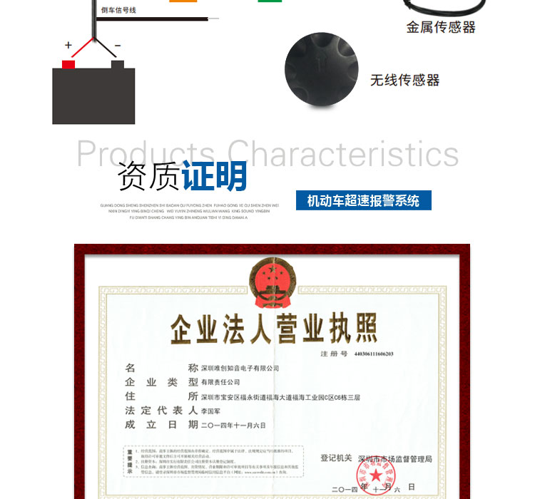 唯创 唯创叉车超速报警器无线测速传感WT2016厂家直销叉车通用限速报警