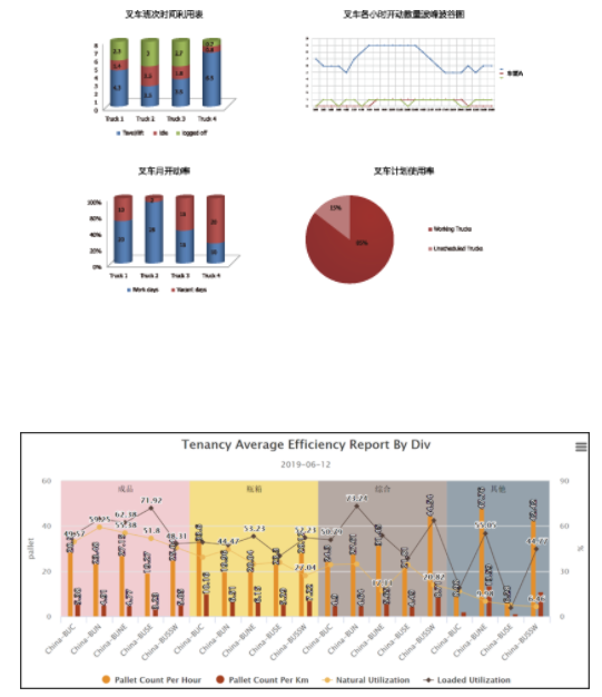 Teknect管理模块可以获取叉车的开动情况、实际工作时间及待机时间等,从而分析叉车的利用率,为管理者分配叉车使用数量提供数据支持
