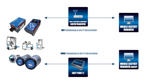的数据传输是双向的过-Fi,蓝牙,蜂窝或电缆。所有设置均在Mobile Easykey Manager软件中进行 。数据也在那里收集和评估。