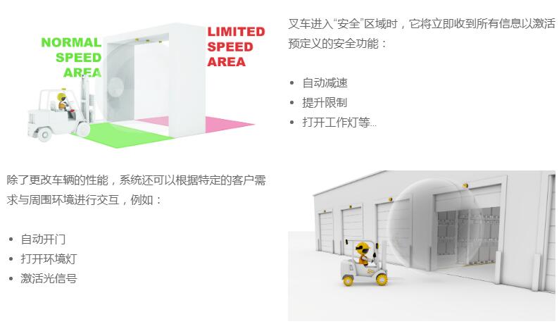 EGOpro安全分区系统可让您根据客户要求的安全要求(例如限制速度)来管理叉车在特定区域的性能。