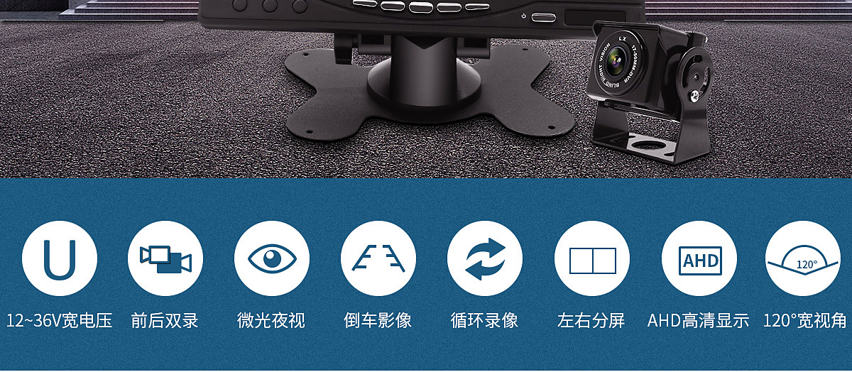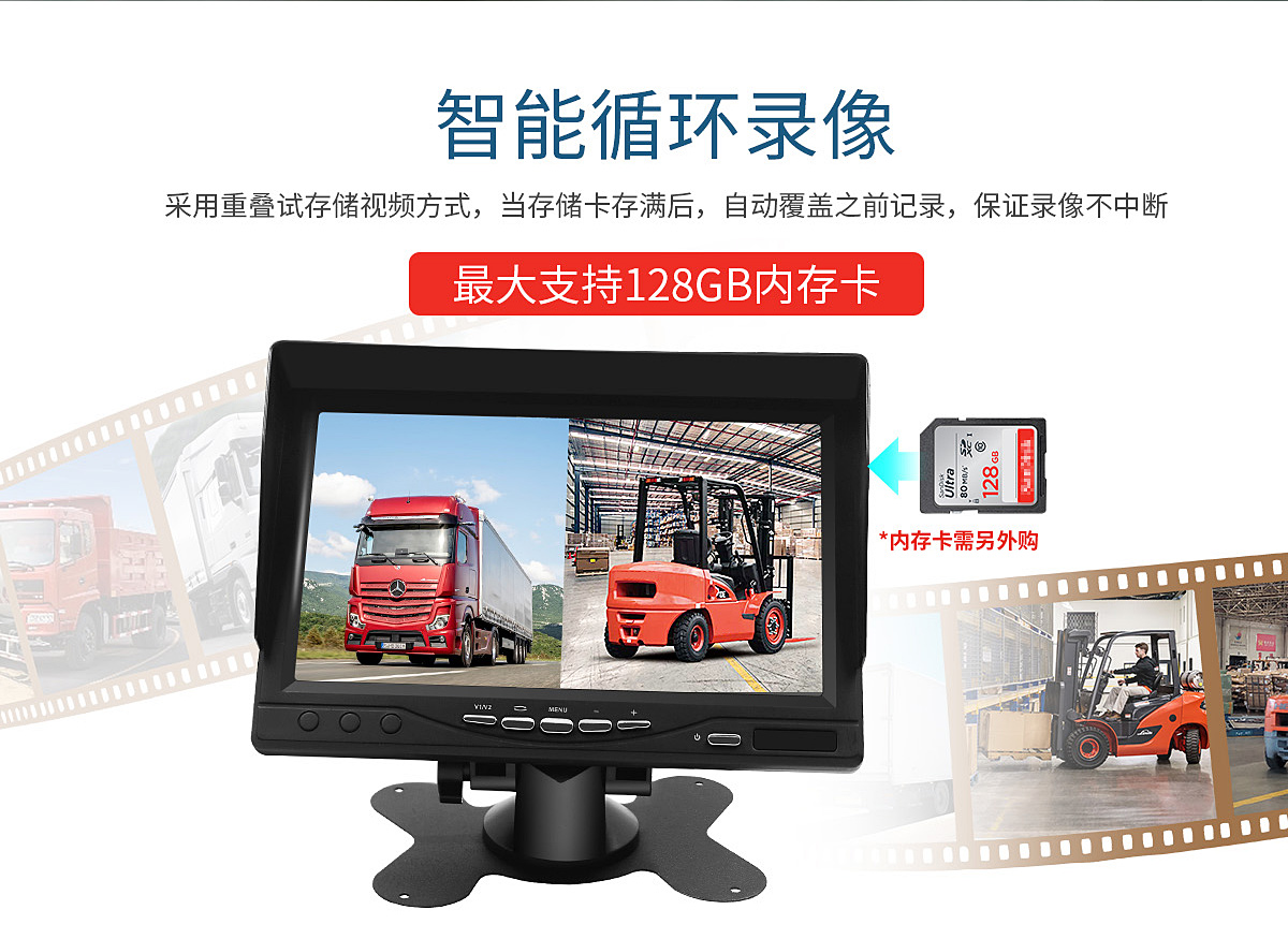 唯创安全:高清7寸后视镜行车记录仪1080P触摸屏前后双录倒车影像
