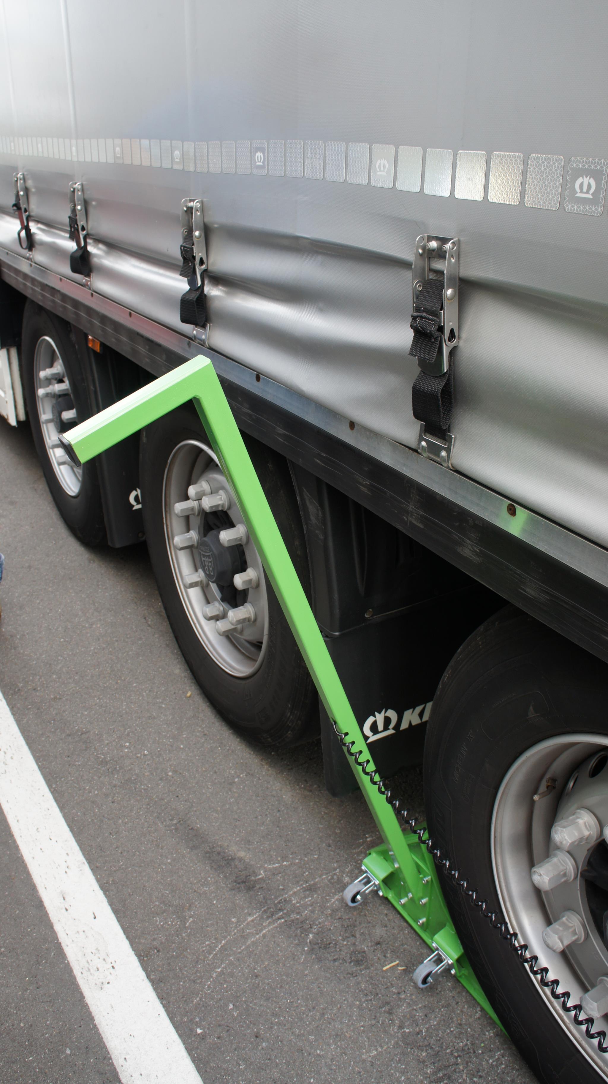 创新的车轮挡块只需将其固定在轮胎下即可可靠地防止卡车溜车。电子传感器确保楔块确实处于正确位置。如果不是这种情况,这不仅会通过外部区域的交通灯来指示,还会通过声音警告信号来报告。与门控或装卸平台的耦合或连接是可能的。也可以识别交换体。还可以通过检测拖车支架来扩展基本型号。