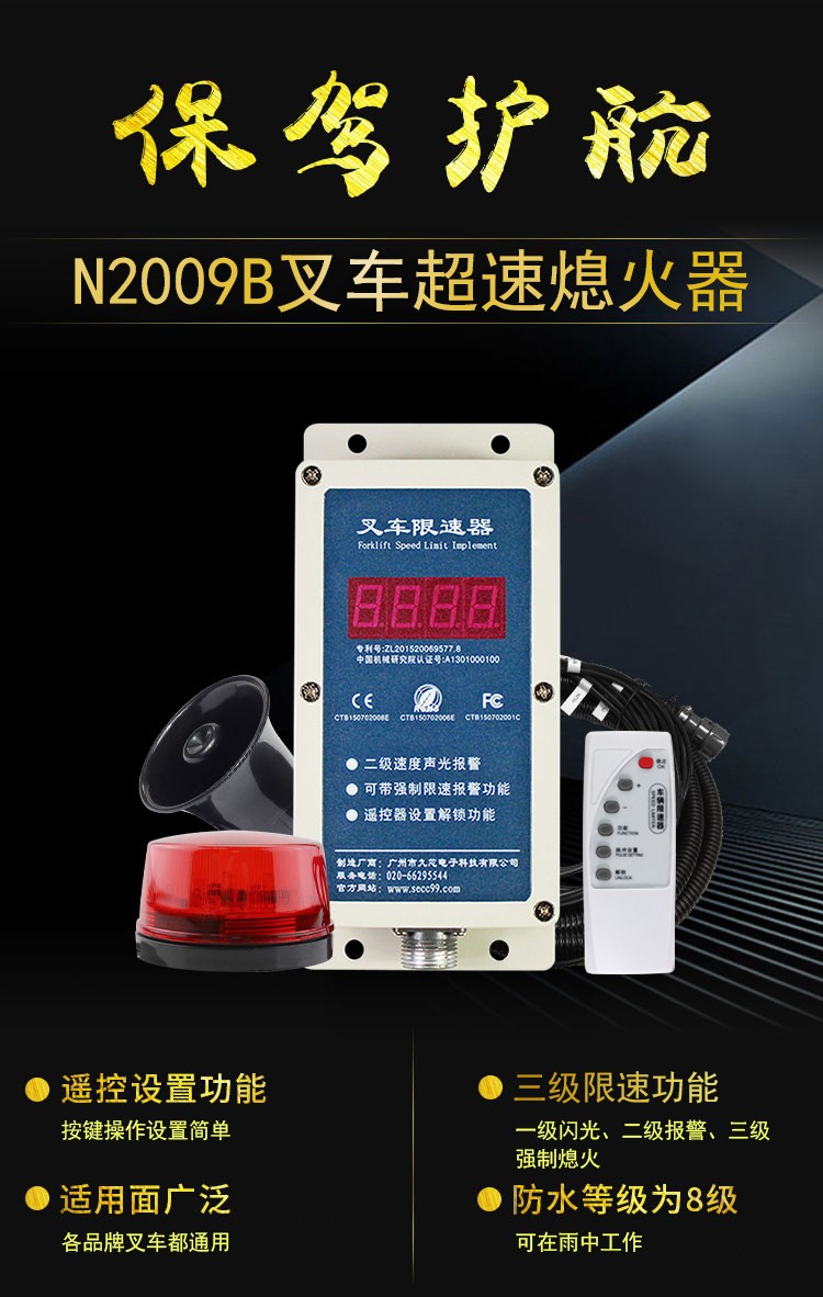 叉车超速报警器N2009B钥匙熄火超速断电停车语音报警器