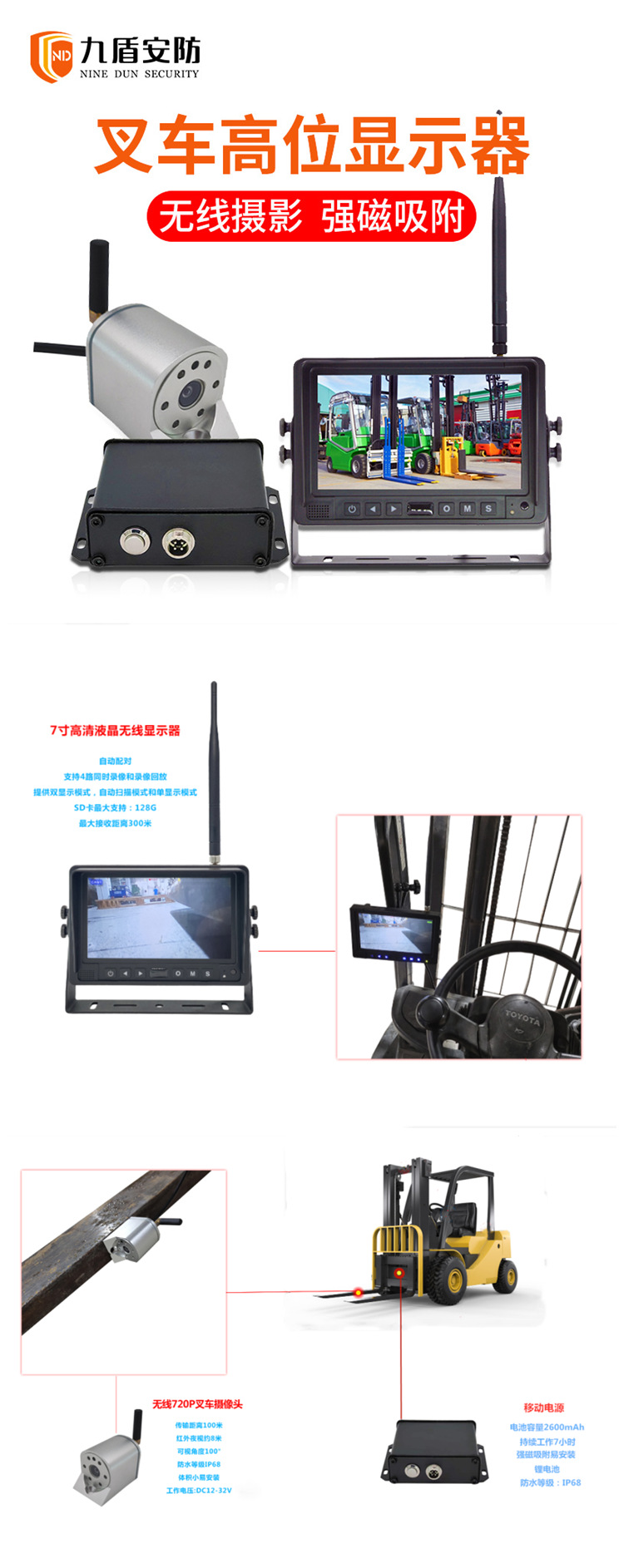 叉车倒车高位显示器高清无线摄像头强磁吸附车载显示器