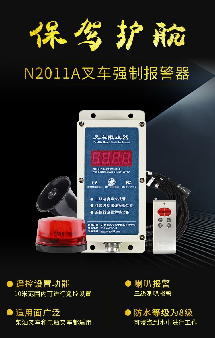 N2009A叉车超速报警器待机锁定功能倒车语音提醒减速提醒装置