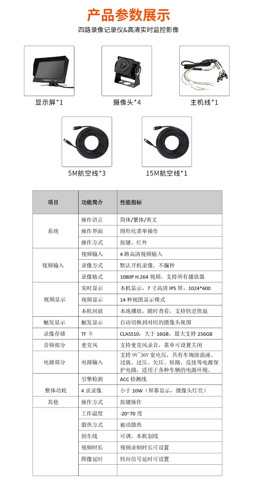 叉车四路行车记录仪360度高清拍摄倒车影像货车四路视频监控