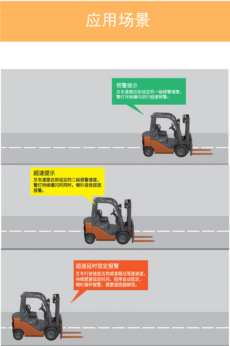 叉车超速报警器外接LED屏 强制限速 声光报警倒车提醒