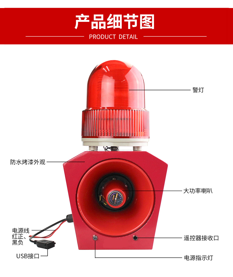 九盾安防工业声光报警器YD-D3 220V/24V/12V通用声光警报器