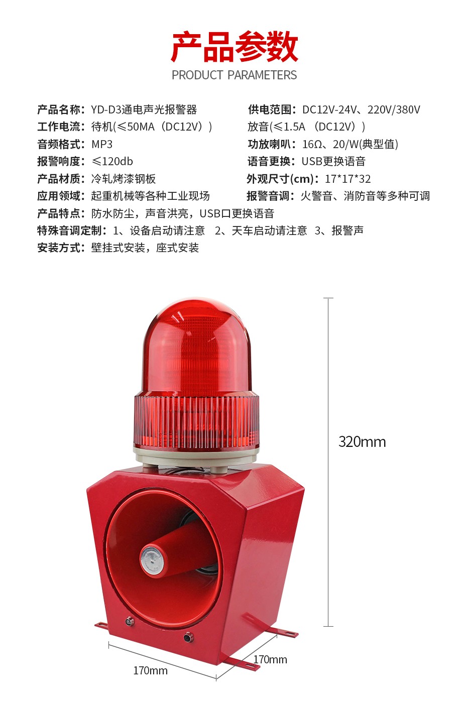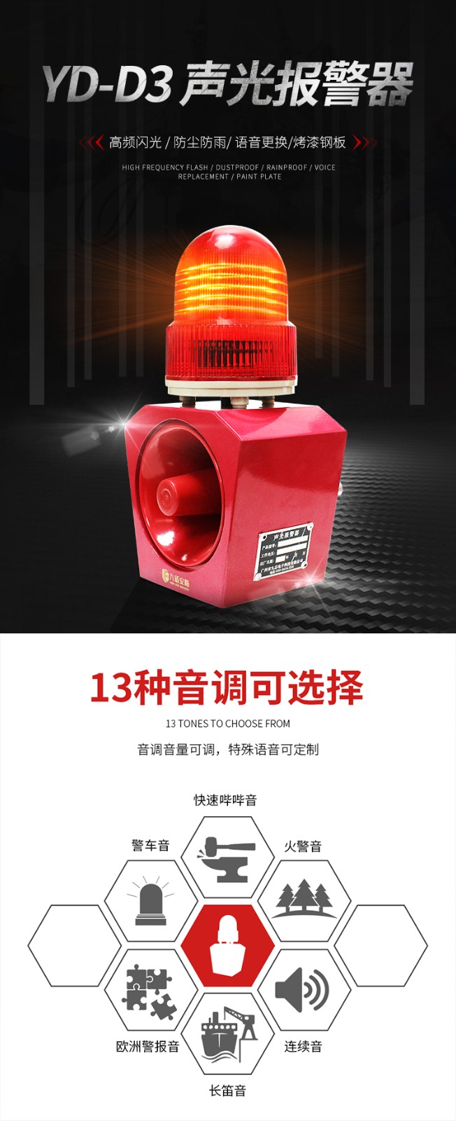 YD-D3声光报警器 工业消防安全户外语音报警器 声光一体