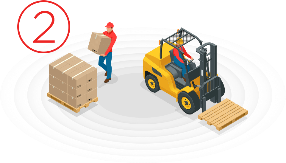 叉车防撞系统通过高精度UWB技术检测其他叉车的接近度。当叉车比预先配置的阈值更近时,系统分 2 个阶段将叉车限制在安全速度。声音和视觉信号可帮助叉车操作员注意到附近的其他卡车并采取相应行动。人工智能驱动的边缘处理叉车网关实时近似计算碰撞风险并提供一流的安全性能。