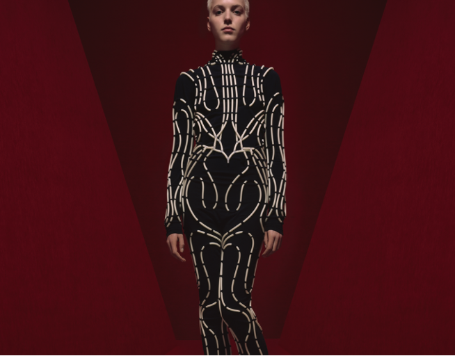 “带有光致发光管的套装”来自 D-Air 实验室与其他合作伙伴合作进行的空间设备研究。遍布全身的管子允许液体通过,根据需要加热或冷却身体。事实上,在太空中,经常会受到温度变化的影响,这可能会使宇航员的重要机能陷入危机:即使在气候不友好的环境中,宇航服也能恢复适合生存的体温。