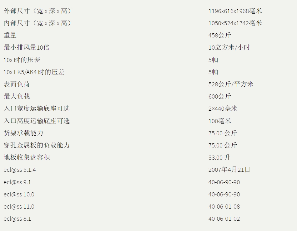 • 内部尺寸:宽 x 深 x 高(毫米)1050 x 524 x 1742