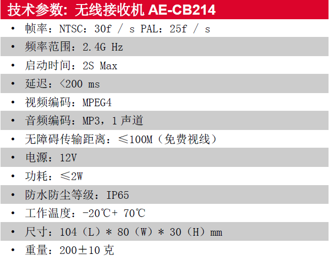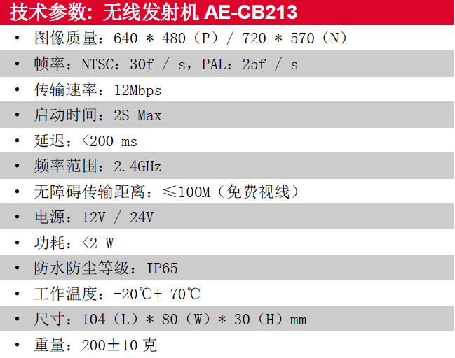 数字无线发射器和接收器接口具有显著的长距离和稳定的传输能力。传输距离可以达到100M。 系统连接后,接收器将自动搜索来自发射器的信号。此外,它增加了手动重新配对功能。无线接口兼容所有Autoequips的产品,并适用于任何类型的车辆。
