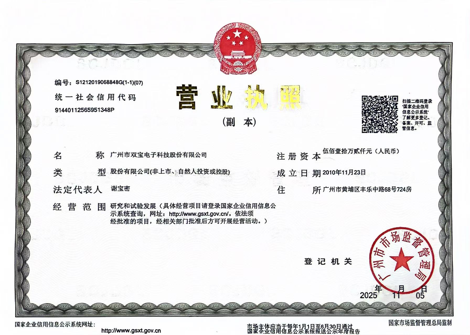 广州市双宝电子科技股份有限公司
