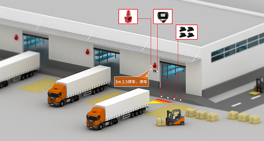 卸货平台安装超声波雷达和声光报警器车辆靠近卸货平台判断距离报警提配可主总距离防撞!
