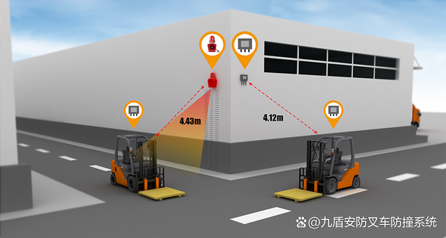 实时起到根据距离远近、判断叉车是否经过,做出不同级别的声光报警,有效预防、杜绝车辆碰撞碾压员工等高危事故发生。