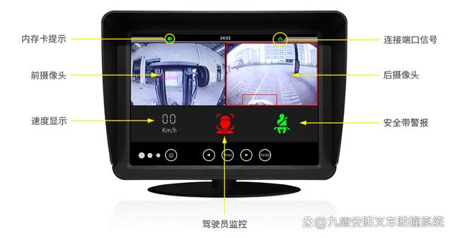 前进防护:通过前置广角摄像头,对人进行有效识别,根据不同距离标注不同颜色进行警示!
