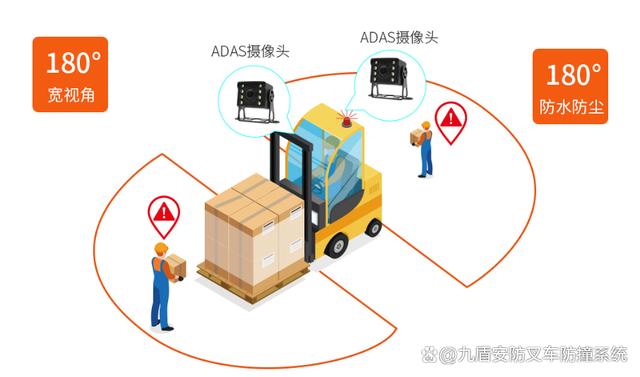 03.ADAS安全监控摄像头:功能主要透过三颗独立摄像头,结合深度学习算法以完成机器视觉的识别工作。其中两颗具备补光设计的超广角摄像头,分别安装在车辆护顶架前后方,超高清画质,利用微光夜视技术,让黑夜宛如白昼,夜间作业无障碍在光线不佳的环境也能够提供人员侦测。