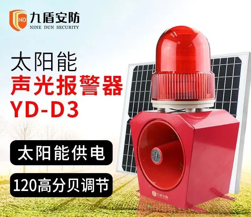 YD-D3C-S太阳能声光报警器在光照环境下,太阳能板自动为内置锂电池充电保证阴雨天/夜晚也能持续工作。