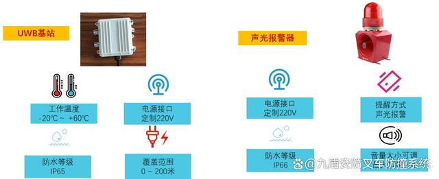 在叉车上安装九盾UWB车辆/人员测距报警防撞系统,叉车车载标签,门口固定UWB定位基站和声光报警器,叉车经过报警提醒,行人佩戴手腕标签,经过门口提醒行人注意防撞!