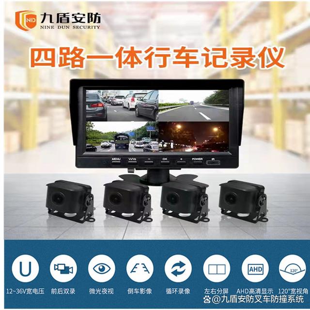 九盾四路一体行车记录仪通过提供全方位的高清摄影和实时记录功能,不仅提高了叉车行驶的安全性,也为企业管理提供了便利,是一款实用且高效的设备。