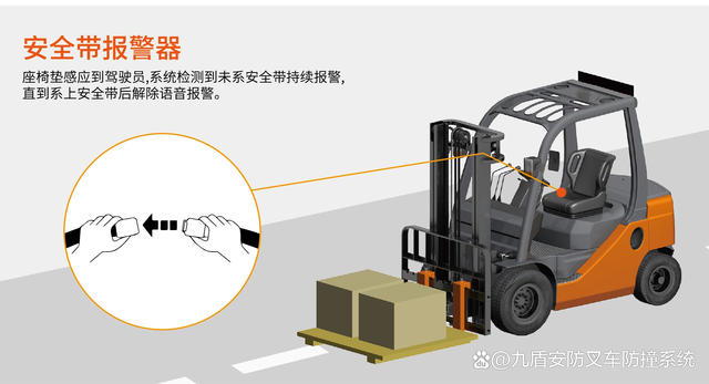 九盾叉车安全带报警器加入了语音提醒功能,时刻提醒叉车驾驶人员系好安全带,有效提高叉车的行驶安全,同样也保证驾驶人员的安全,减少叉车安全事故发生率。