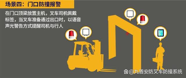 九盾安防叉车UWB门口拐角盲区防撞系统为叉车作业提供了全方位的安全保障,有效提高了作业安全性和效率。
