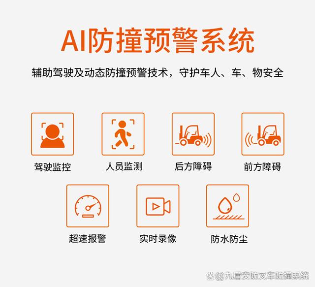 5. 智能预警,提前干预:引入叉车防撞预警系统(如九盾安防智能IA防撞系统),通过实时侦测工作区域的危险状态并提供警示,有效提升作业安全性。这一智能装置为叉车装上了“千里眼”,让危险无所遁形。