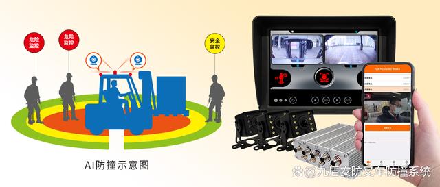 AI防撞系统采用AI人工智能技术的视频监控装置,集成摄像头与图像计算,实时检测叉车行驶、行人识别和操作员行为。