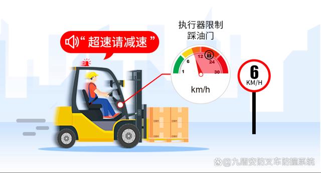 车间超速报警管理:通过内置的GPS定位与速度传感器,九盾安防AI叉车防撞系统N2024G-2能实时监控叉车的行驶速度。一旦叉车超过预设的车间限速,系统将立即发出超速报警,提醒驾驶员减速行驶。若驾驶员忽视警告持续超速,系统有权采取进一步的干预措施,如限制车辆动力输出,确保叉车在安全速度范围内运行,大大降低了因高速行驶引发的碰撞风险。