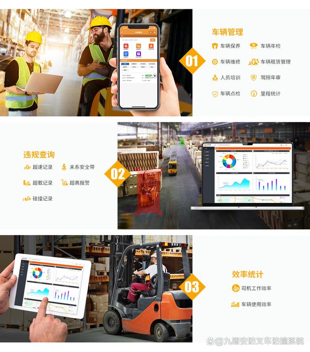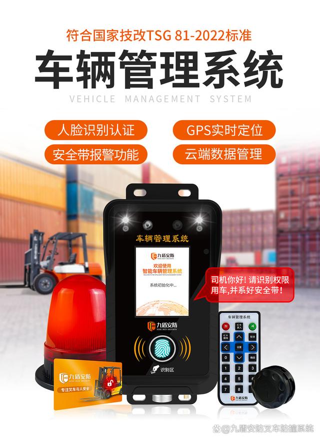 九盾安防N2023B车辆管理系统通过集成高清摄像头、雷达传感器以及先进的物联网技术,实现了对司机认证授权驾驶与叉车运行状态的实时监控。它不仅能够有效杜绝司机的无证驾驶还能进行速度管理,通过声光报警提醒驾驶员与行人注意潜在危险,还能自动限制叉车在未经授权区域的行驶速度,确保作业环境内的行人安全。