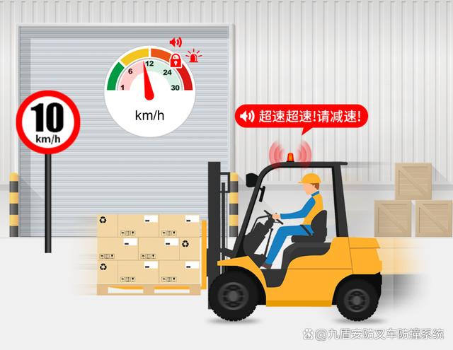 为减少车辆超速导致人员碰撞的风险,我们建议在叉车上安装超速报警与强制限速装置。该装置通过无线传感器测速模块实时监测叉车的行驶速度,一旦叉车速度超过预设的安全限制,系统将立即发出声光报警,提醒驾驶员减速。若驾驶员未能在规定时间内将速度降至安全范围内,系统将自动启动强制限速功能,通过电子油门控制器限制叉车的行驶速度,确保其在安全范围内运行。