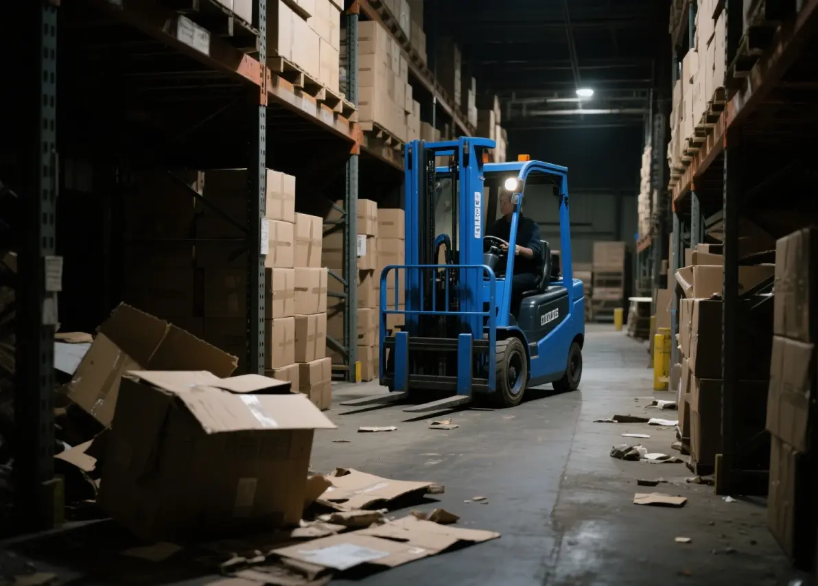 1. 视觉盲区陷阱:堆满纸箱的货架形成天然屏障,叉车转弯时,驾驶员根本无法察觉突然出现的行人。