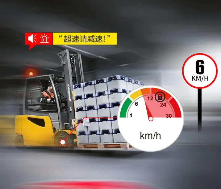 实时监测叉车速度,超过预设速度阈值时声光报警,提醒司机减速。