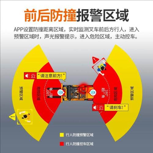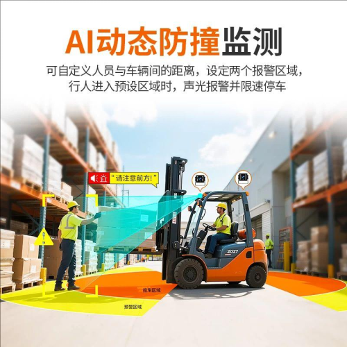 1.精准识别,360° 无死角监测:九盾 AI 叉车防撞系统搭载先进的高清摄像头与毫米波雷达,可实时扫描 5 - 30 米范围内的行人、障碍物及其他车辆。无论是仓库中复杂的货物堆垛,还是工地突然闯入的工人,亦或是逆光环境下的视觉盲区,都能被精准识别,识别准确率高达 99.7%,让隐患无处遁形。