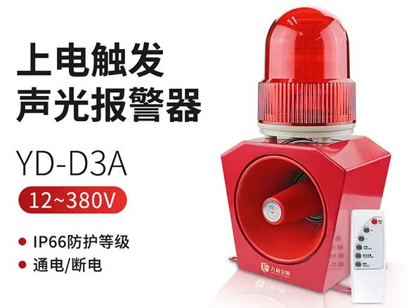 通电播放声光报警器通上电,给到开关信号到报警器上,就可以遥控调节声音音调,定制语音由于产品安装简单,且维护省心,产品使用寿命长,安装之后,能够优化人力物力资源配置,减少资源浪费,为企业发展提供强有力的安全保障。