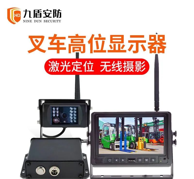 而安装九盾安防叉车高位显示器能够轻松解决货叉升降问题,采用7寸高清的屏幕,通过无线的摄像头无线连接实时传输货叉的,让驾驶员有效地避免货叉的盲区和解决驾驶员长时间仰视的问题,降低风险事故!