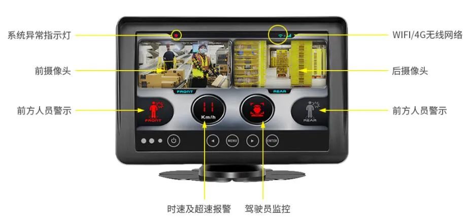 AI叉车防撞预警系统是专为工业车辆等工程设备研发设计的智能视频监控装置。采用AI人工智能技术,能够实时侦测工作区域的危险状态并警示,驾驶员及仓库人员无需佩戴身份识别工卡。
