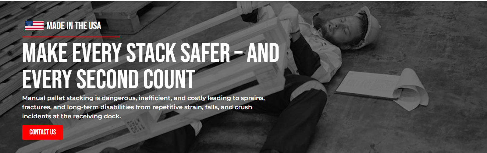 SafeStackers™是唯一一台获得美国专利、美国制造的专为仓库收货端设计的自动托盘堆叠机。